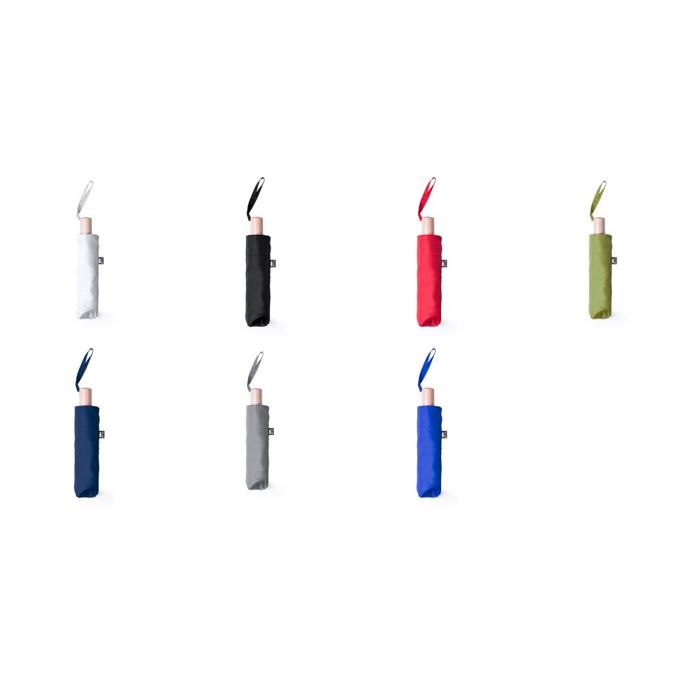 Paraguas Brosian plegable, disponible en varios colores y personalizable con 1 o 2 logotipos en color o monocolor.