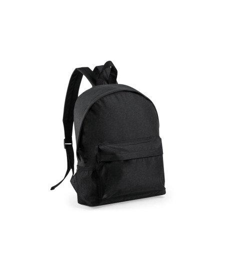 Mochila en resistente 600D RPET, elaborado a partir de plástico reciclado, para así fomentar la reutilización de residuos plásticos y ayudar a la sostenibilidad del planeta. Con cierre de cremallera y bolsillo en frontal, esquinas reforzadas, tiradores con cinta para fácil apertura y accesorios en color negro, con rejillas laterales de tela para depositar objetos. Espalda y cintas de hombros acolchadas y ajustables. Distintivo RPET en etiqueta.
