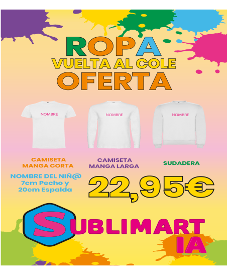 Impresión del nombre del niñ@ 8cm delante y detras 20cm.
